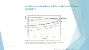 - Der verwendete Puffer passt nicht zu dem gewählten pH-Wert. Beispielsweise ist Phosphatpuffer für einen avisierten pH-Wert von 4 oder 5 nicht geeignet, er hat in diesem Bereich kaum eine Puffer-Kapazität, siehe Abbildung 2.